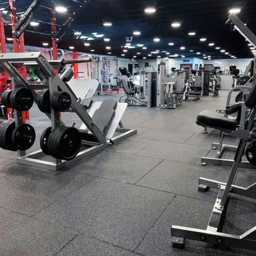 Before installing gym rubber tiles, the space had a standard smooth floor that was not designed for fitness activities. While the room looked modern and spacious, the flooring lacked.